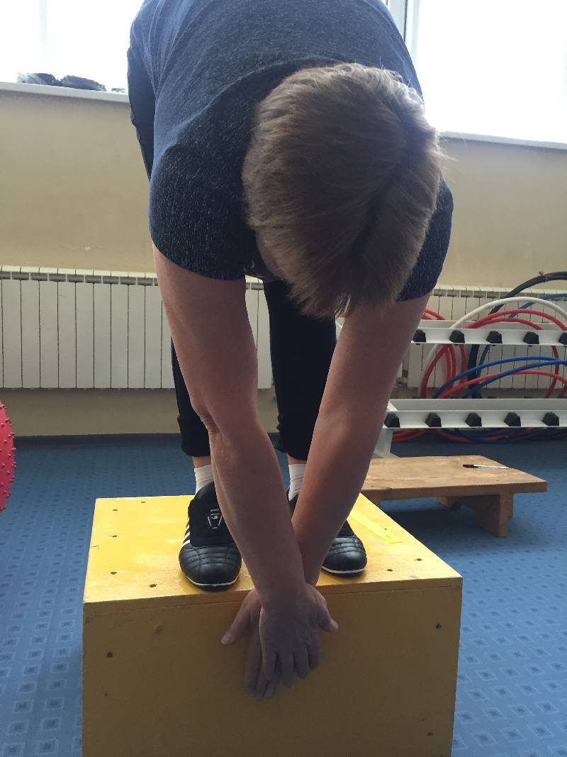 -Наклон вперед из положения стоя с прямыми ногами на гимнастической скамье;