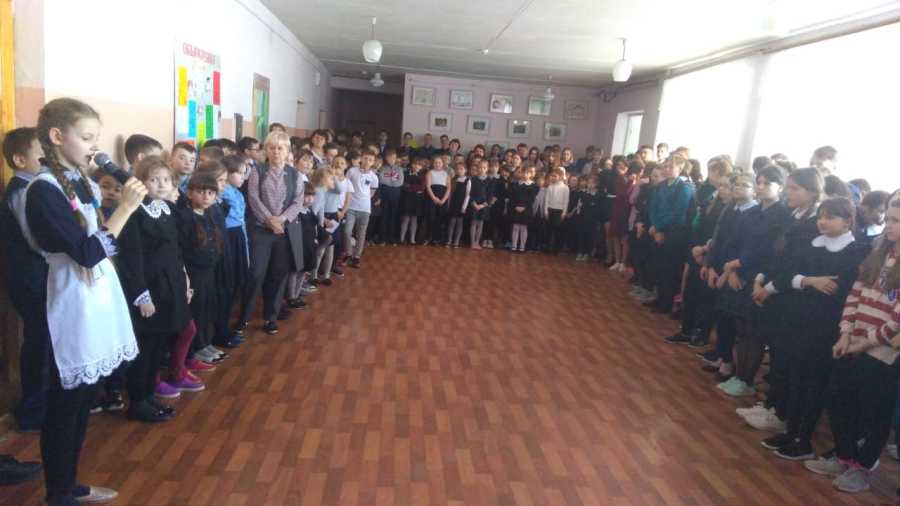 На линейке, проведённой в этот день, школьники читали стихотворения о Великой Отечественной войне. Взволнованно и проникновенно звучали детские голоса, напоминая о сожженных деревнях и городах, о сотнях виселицах и концлагерях, о разливающемся море человеческого горя, о славных защитниках России!