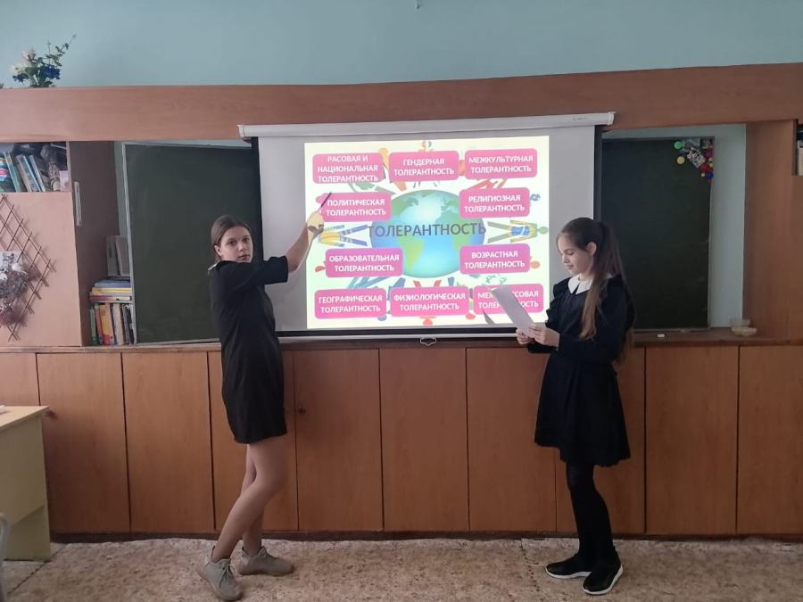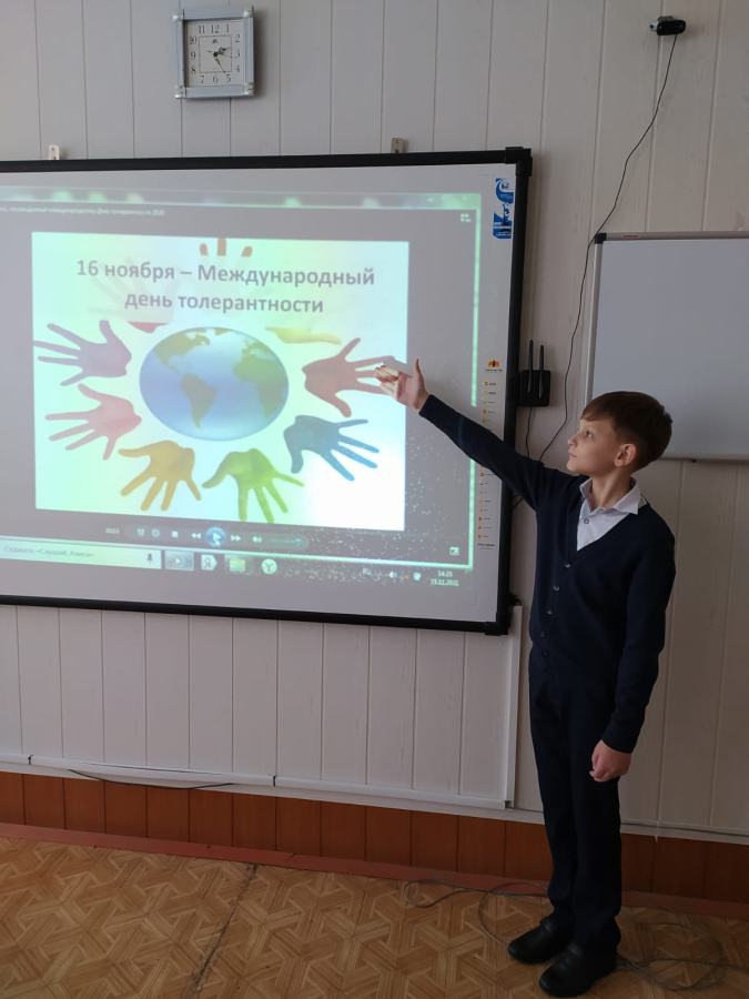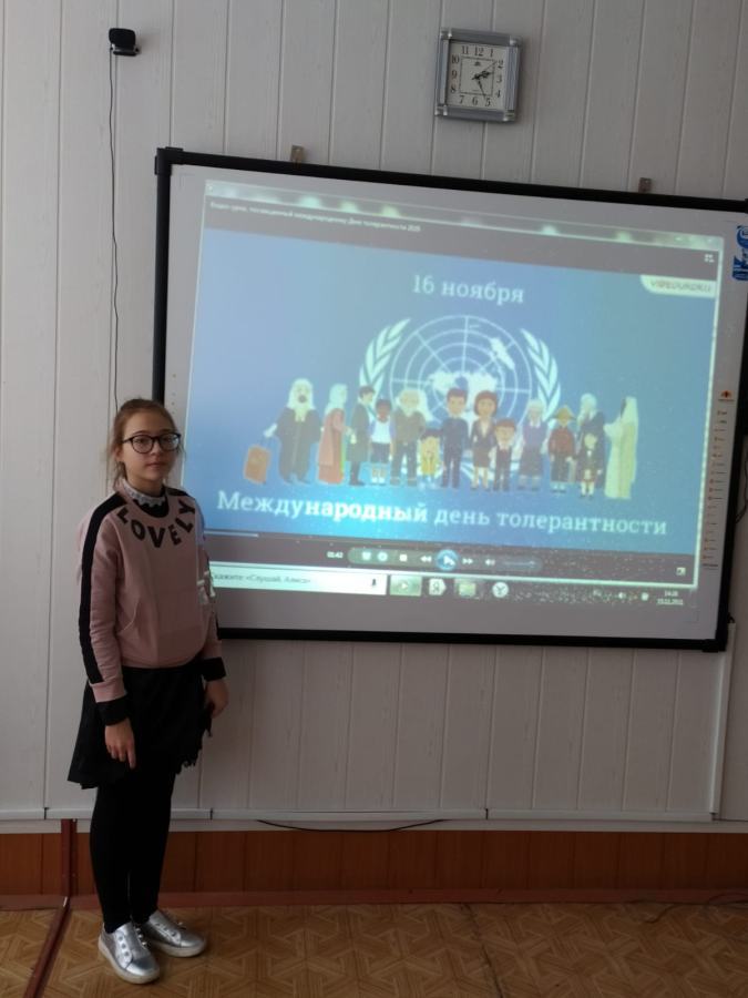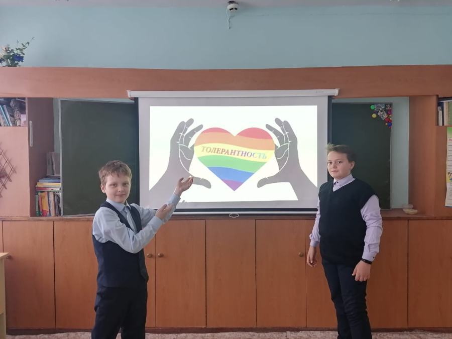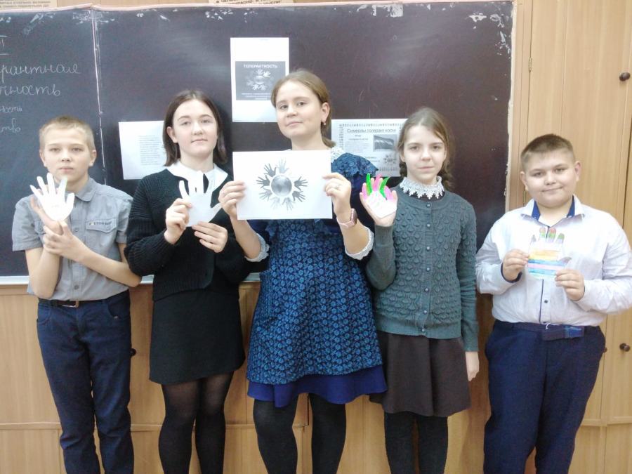 В преддверии данного праздника в МБОУ «Комсомольская СОШ№2» были проведены классные часы, целью которых являлось знакомство с понятием "толерантность", его значением и актуальностью в формировании нравственных качеств учащихся. Ребята познакомились с понятием и происхождением слова "толерантность", выяснили какими качествами обладает толерантный человек. С детьми были проведены следующие игровые упражнения: "Мелочи жизни", " Жемчужина добра", "Комплименты". В завершение мероприятия у детей получился красочный кластер. Данный кластер они украсили своими ладошками и фотографиями.