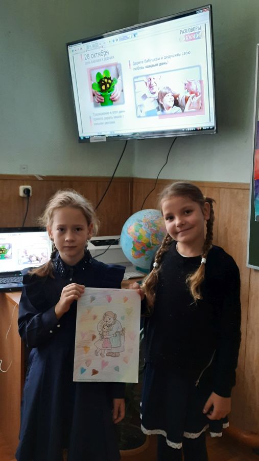 Во 2 а классе (классный руководитель Мельникова Г.А.) МБОУ "Комсомольская СОШ N1" прошло занятие по внеурочной деятельности "Разговоры о важном" на тему "День пожилых людей". В ходе занятия говорили о роли пожилых людей в современном обществе и о нашем долге уважать и почитать старших. Ребята поделились личными историями о традициях своей семьи. В конце занятия рисовали своих любимых бабушек и дедушек.