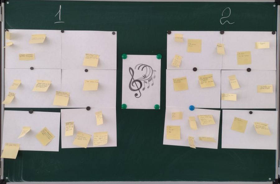 На этом занятии ребята погрузились в мир музыки, совершили путешествие по нашей музыкальной стране, познакомились с уникальными народными музыкальными инструментами. Ребята вспомнили известные им жанры: классика, народная музыка, джаз, эстрада, ретро, рэп и др. В ходе занятия прозвучали фрагментны музыкальных произведений, и все дети угадали жанр музыки. Песня «Чунга-Чанга»: эстрада, музыкальный фрагмент «Плясовая»: народная музыка, музыкальный фрагмент «Вальс цветов» (из балета «Щелкунчик»): классика. Прослушали и поразмышляли о значении народных мелодий. Своеобразие народной музыки во многом определяется и уникальными музыкальными инструментами. После просмотра небольшого видеоролика о русских народных музыкальных инструментов выполнили интерактивное задание «Филворд» (найди названия пяти народных музыкальных инструментов). Ими оказались рожок, жалейка, дрова, балалайка и гусли. В заключении поразмышляли о значении музыки в жизни человека. Ответили на два вопроса. 1. Что дает музыка человеку, как она влияет на него, зачем человеку нужна музыка? 2. Ваш любимый музыкальный жанр, может быть любимый композитор, любимые группы, какое-то музыкальное произведение. И приклеили свои стикеры с ответами на общую музыкальную площадь.