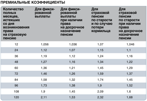 Премиальные коэффициенты за более позднее обращение за пенсией для страховой пенсии –