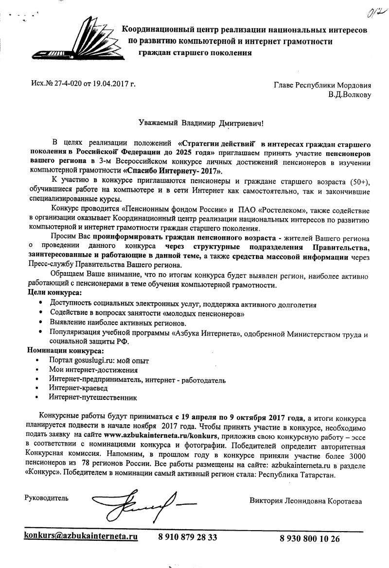 Всероссийский конкурс личных достижений пенсионеров в изучении компьютерной грамотности "Спасибо Интернету - 2017"