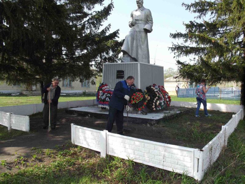 З мая специалисты убирали территорию у памятника Неизвестному солдату в отдаленном селе Наченалы, которое расположено на территории Апраксинского сельского поселения.