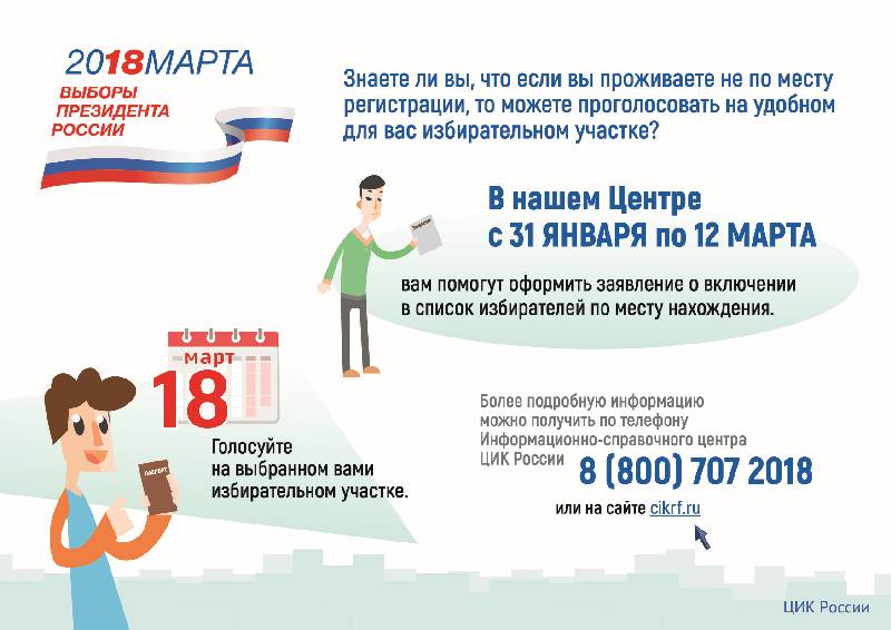ЗНАЕТЕ ЛИ ВЫ, ЧТО ЕСЛИ ВЫ ПРОЖИВАЕТЕ НЕ ПО МЕСТУ РЕГИСТРАЦИИ, ТО МОЖЕТЕ ПРОГОЛОСОВАТЬ НА УДОБНОМ ДЛЯ ВАС ИЗБИРАТЕЛЬНОМ УЧАСТКЕ?